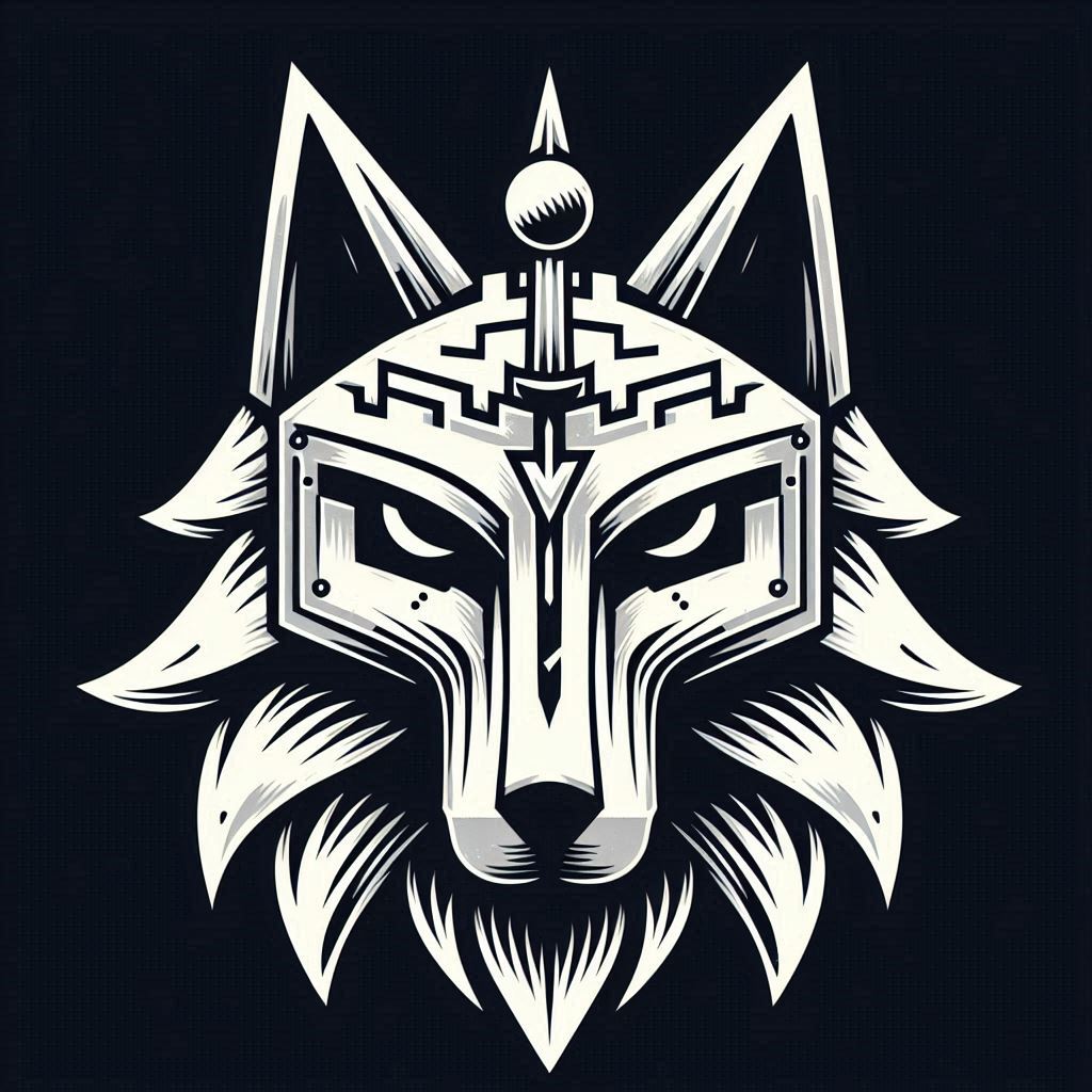 chinese insignia. It resembles a wolf's head with an battlement and ball between the ears, two slanted eyes, an arrow where the nose should be and a lightning bolt on the arrow.