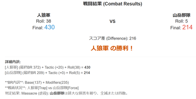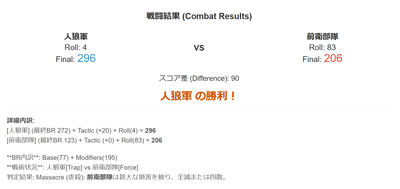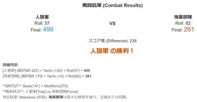 兵員数を入力する箇所をこさえたのに、兵員比を算出して処理してくれる機能と、ダメージ結果を適応して兵数を減らす処理が漏れていました。