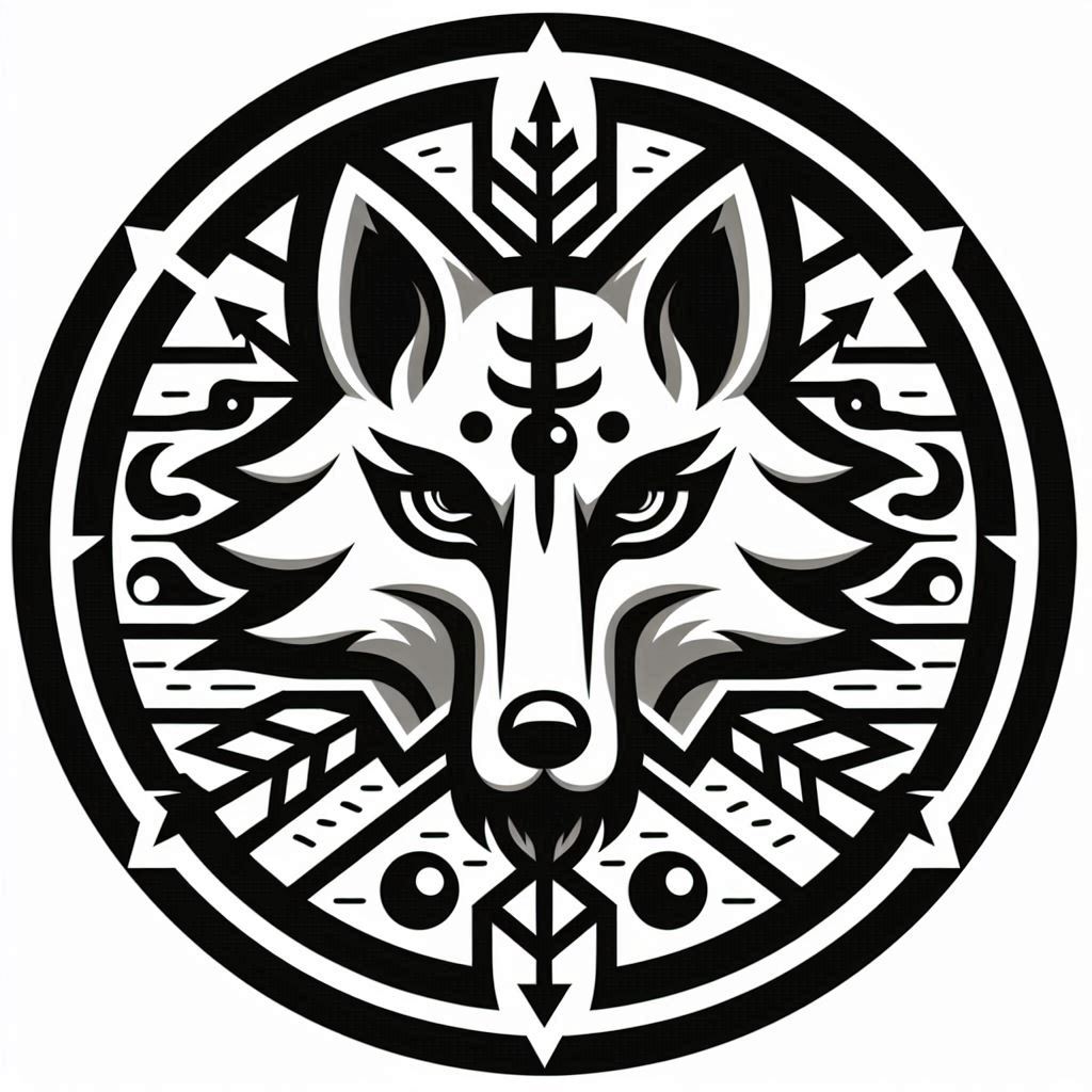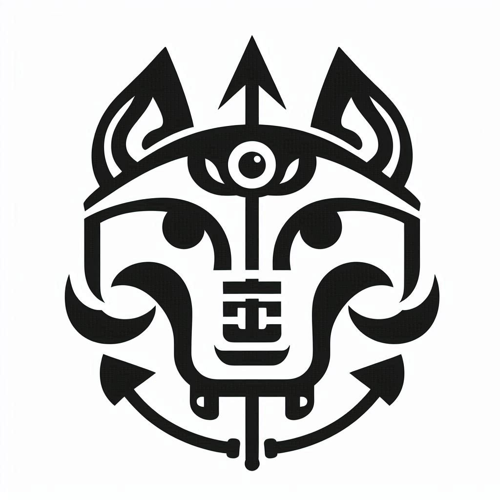 chinese insignia. It resembles a wolf's head with an battlement and ball between the ears, two slanted eyes, an arrow where the nose should be and a lightning bolt on the arrow.